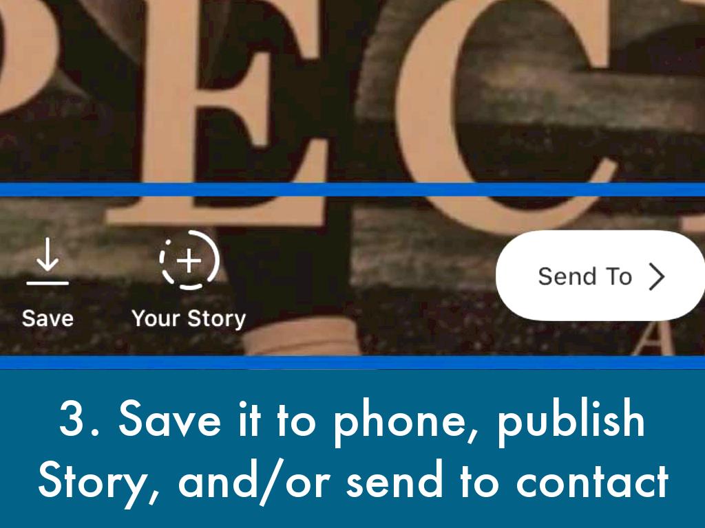 After creating the Story, you have the option to save it your phone, publish it your Story, and/or send it as a private message to a contact.