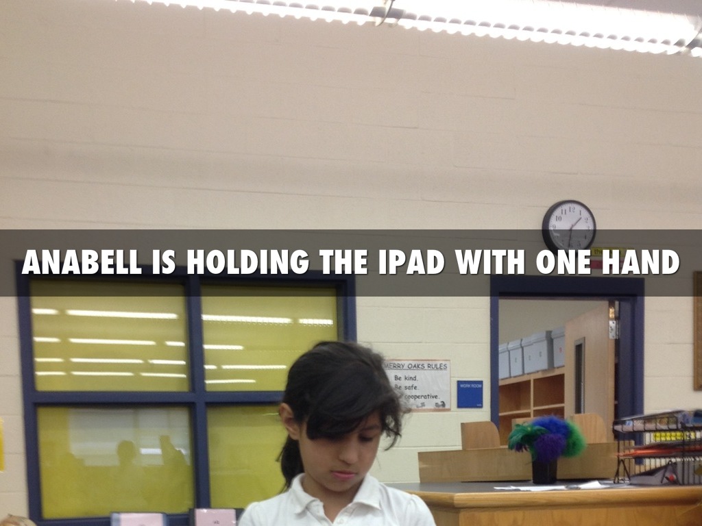 ANABELL IS HOLDING THE IPAD WITH ONE HAND