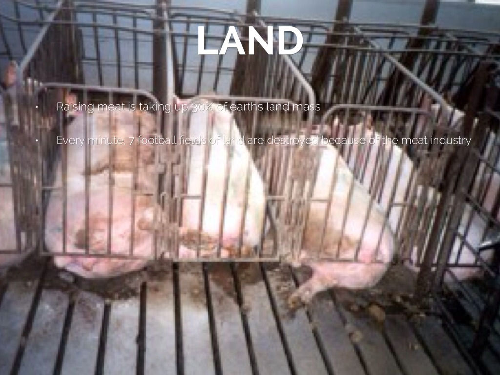 - Every minute, 7 football fields of land are destroyed because of the meat industry