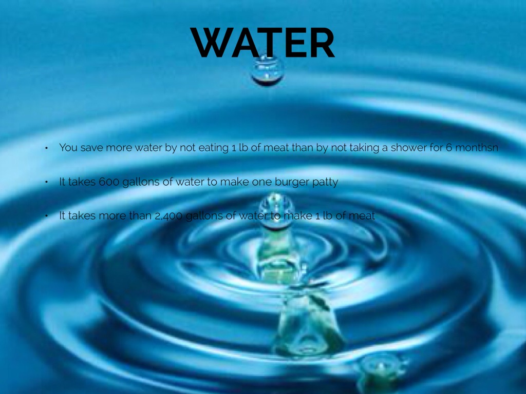 - It takes more than 2,400 gallons of water to make 1 lb of meat
