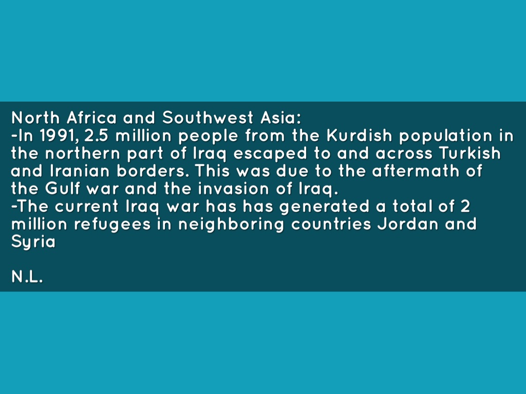 -In 1991, 2.5 million people from the Kurdish population in the northern part of Iraq escaped to and across Turkish and Iranian borders. This was due to the aftermath of the Gulf war and the invasion of Iraq.