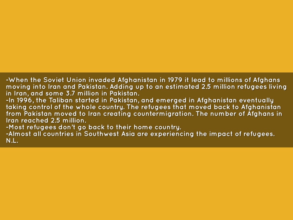 -In 1996, the Taliban started in Pakistan, and emerged in Afghanistan eventually taking control of the whole country. The refugees that moved back to Afghanistan from Pakistan moved to Iran creating countermigration. The number of Afghans in Iran reached 2.5 million.