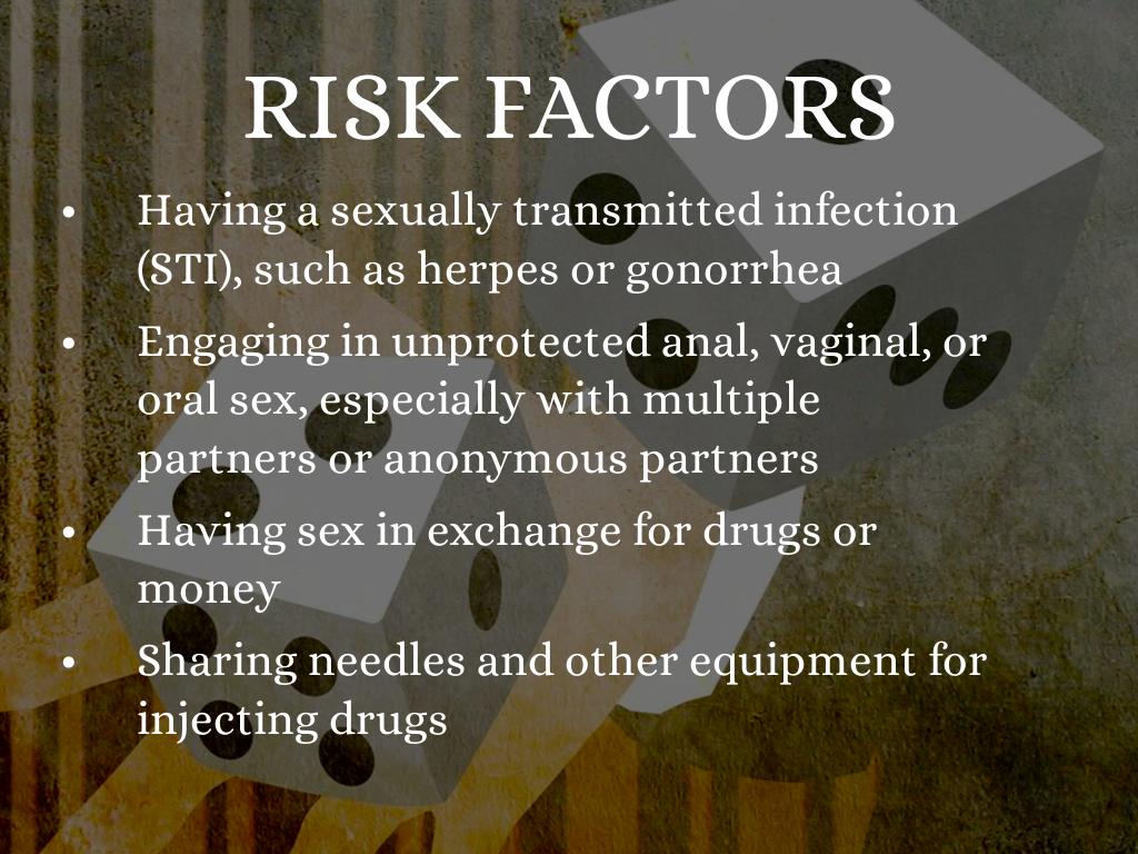 Engaging in unprotected anal, vaginal, or oral sex, especially with multiple partners or anonymous partners