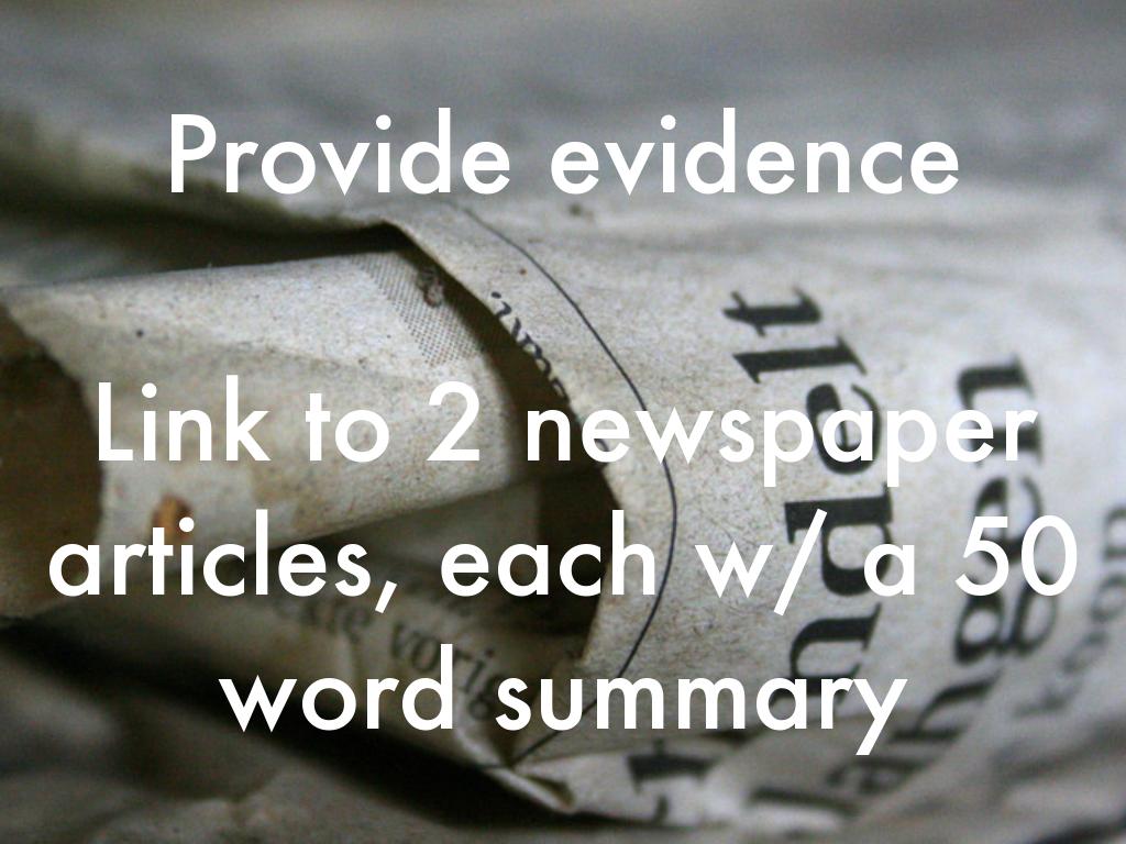 Link to 2 newspaper articles, each w/ a 50 word summary