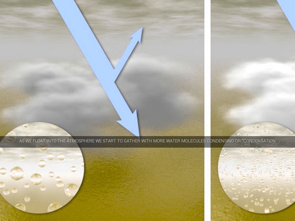As we float into the atmosphere we start to gather with more water molecules condensing or "condensation