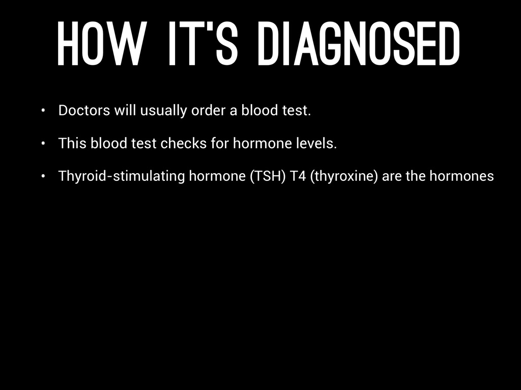 • Thyroid-stimulating hormone (TSH) T4 (thyroxine) are the hormones