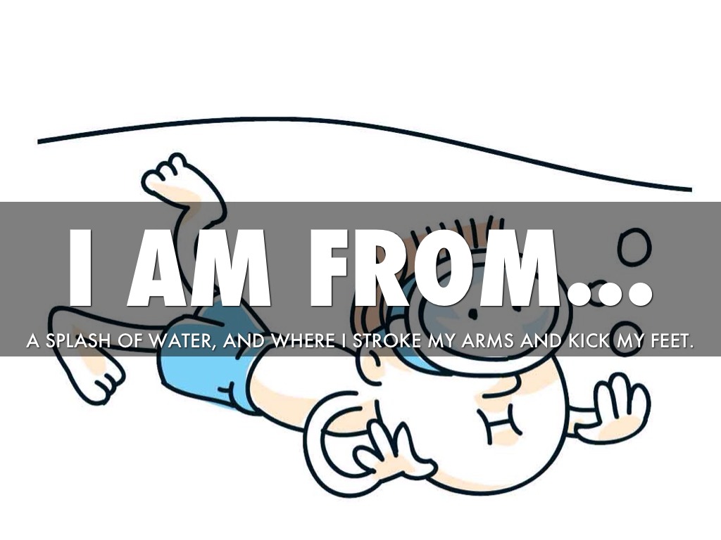 A SPLASH OF WATER, AND WHERE I STROKE MY ARMS AND KICK MY FEET.