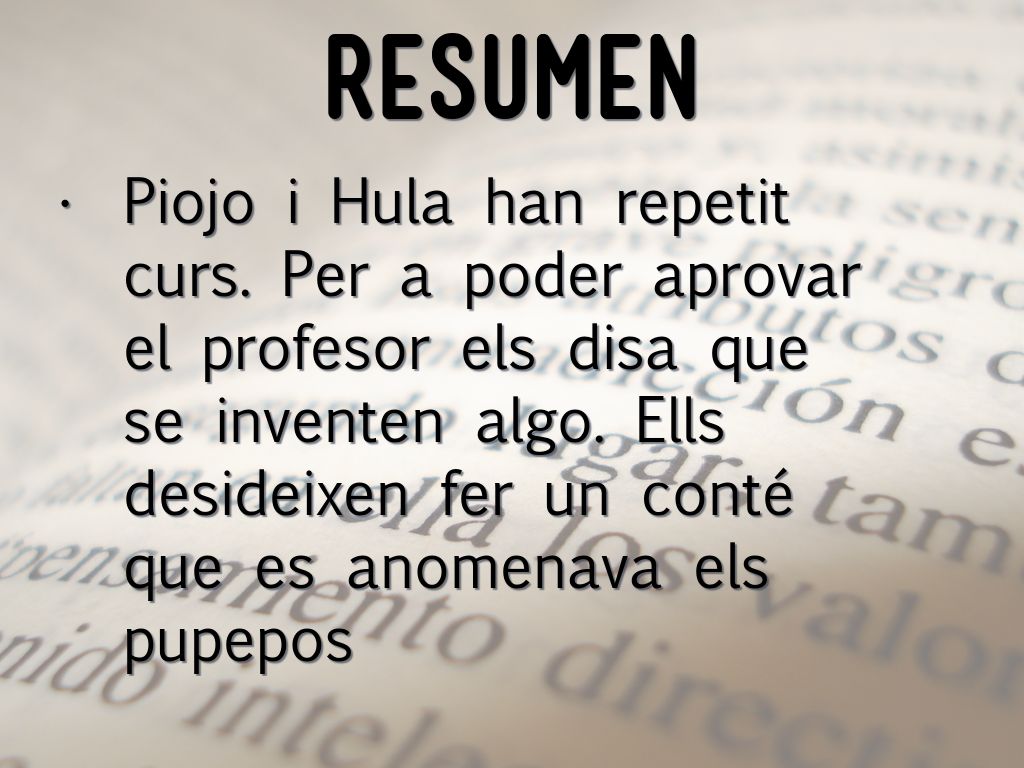Piojo i Hula han repetit curs. Per a poder aprovar el profesor els disa que se inventen algo. Ells desideixen fer un contΓ© que es anomenava els pupepos