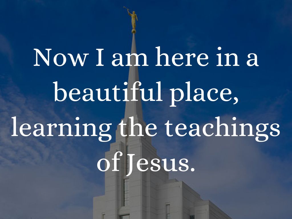 Now I am here in a beautiful place, learning the teachings of Jesus.