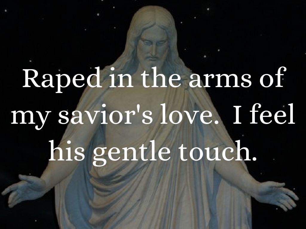 Raped in the arms of my savior's love. I feel his gentle touch.