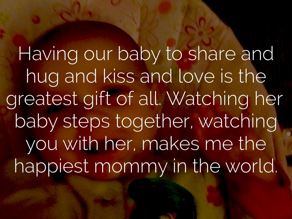 Having our baby to share and hug and kiss and love is the greatest gift of all. Watching her baby steps together, watching you with her, makes me the happiest mommy in the world.