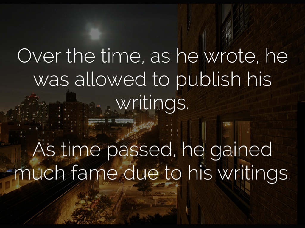 Over the time, as he wrote, he was allowed to publish his writings.