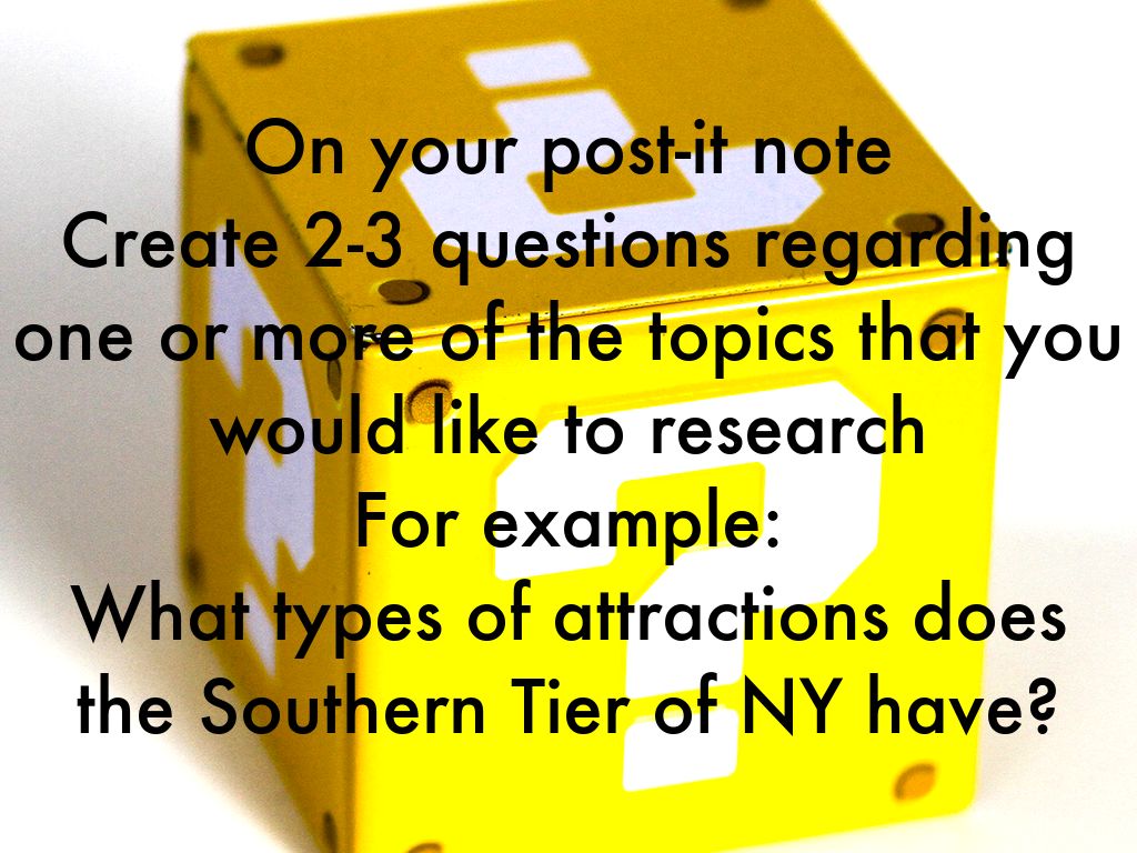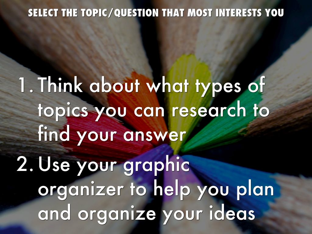 • Think about what types of topics you can research to find your answer