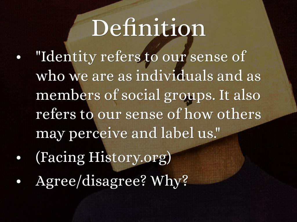 "Identity refers to our sense of who we are as individuals and as members of social groups. It also refers to our sense of how others may perceive and label us."