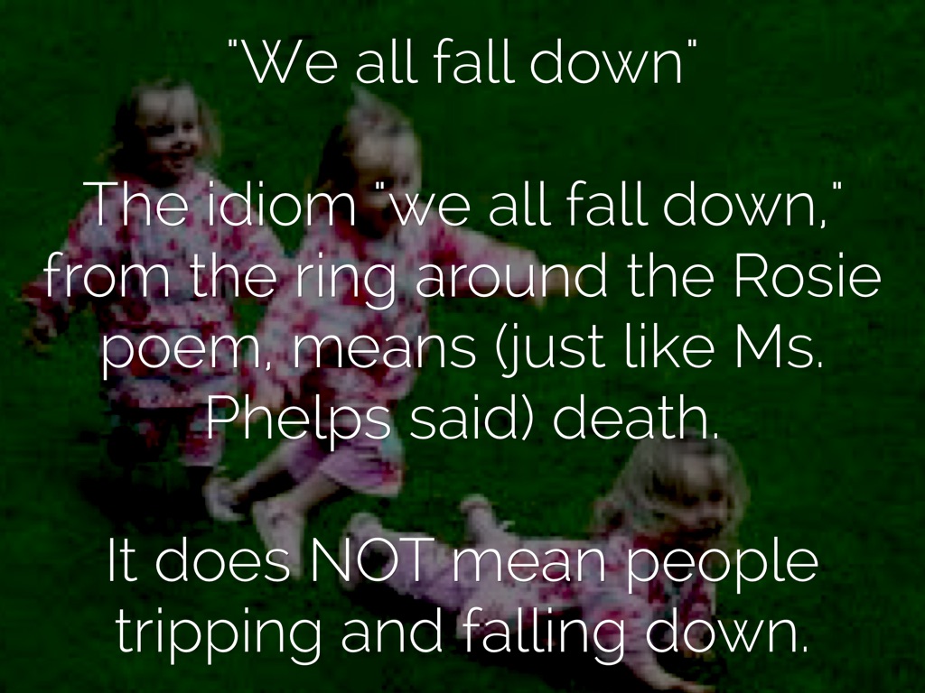 The idiom "we all fall down," from the ring around the Rosie poem, means (just like Ms. Phelps said) death.