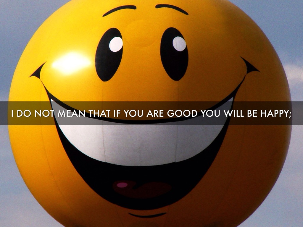 I DO NOT MEAN THAT IF YOU ARE GOOD YOU WILL BE HAPPY;