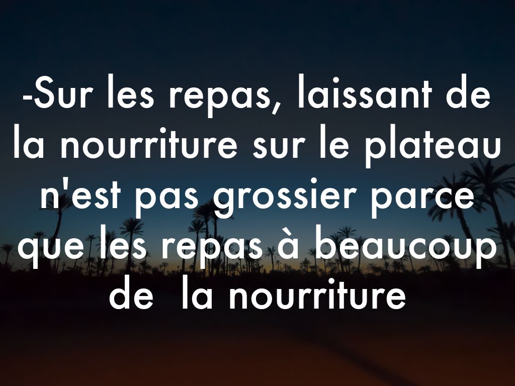 -Sur les repas, laissant de la nourriture sur le plateau n'est pas grossier parce que les repas à beaucoup de la nourriture
