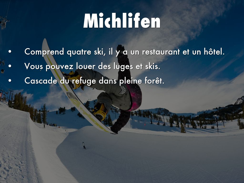 Comprend quatre ski, il y a un restaurant et un hôtel.
