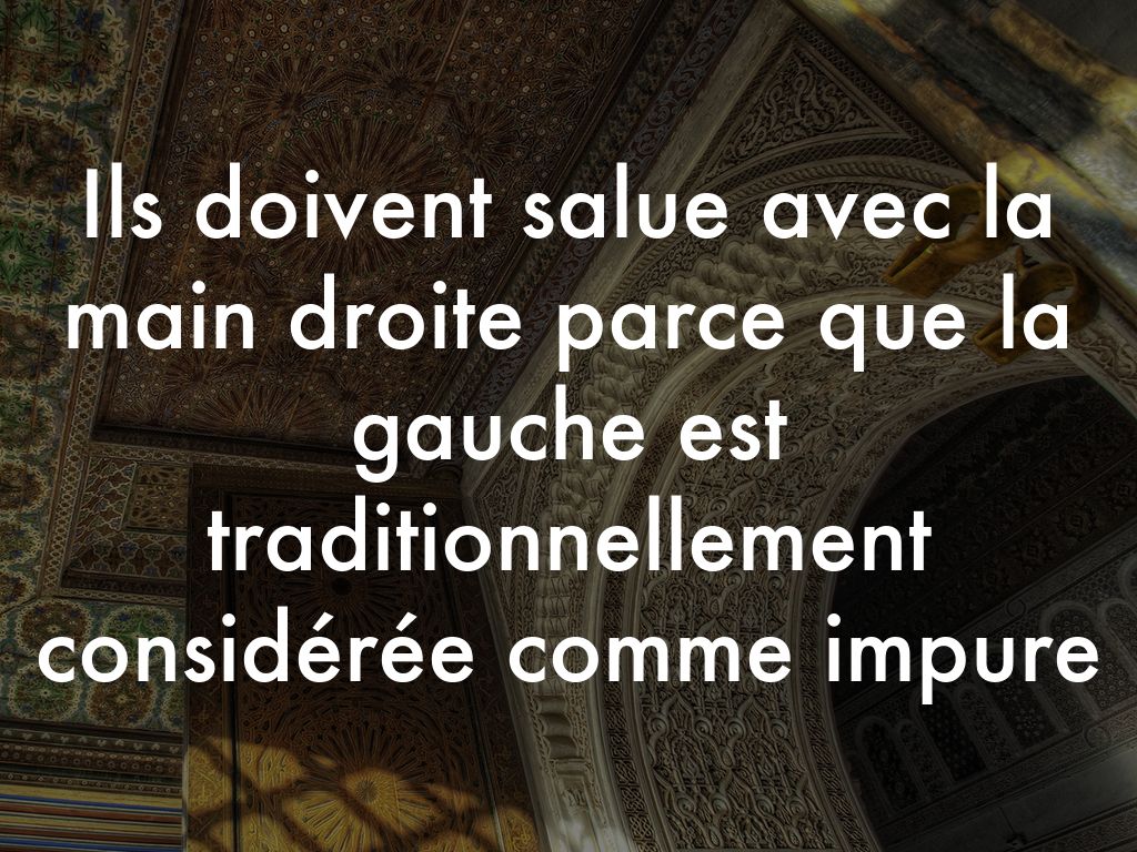 Ils doivent salue avec la main droite parce que la gauche est traditionnellement considérée comme impure