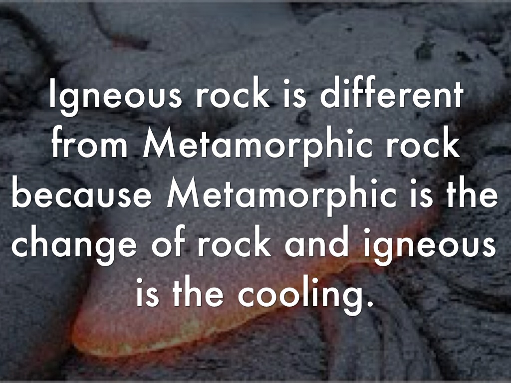 Igneous rock is different from Metamorphic rock because Metamorphic is the change of rock and igneous is the cooling.