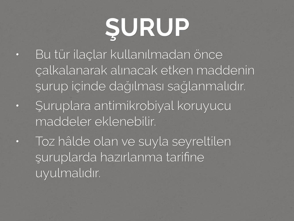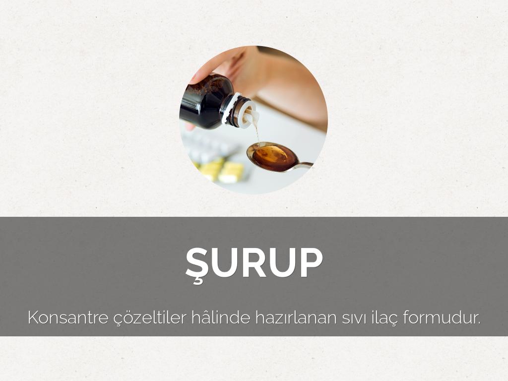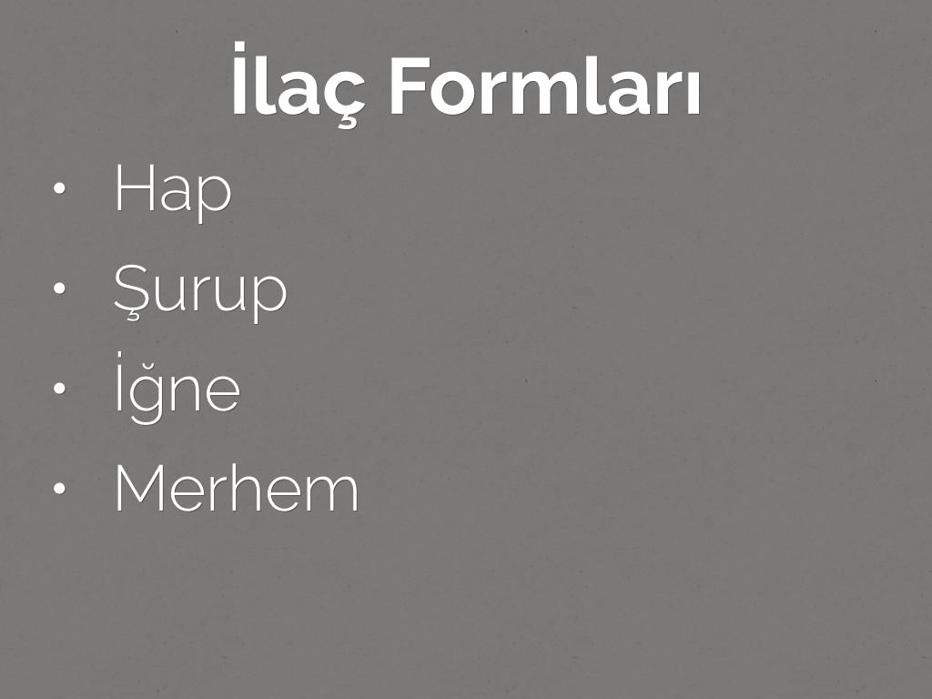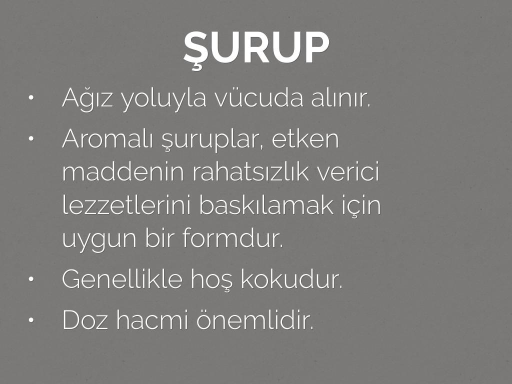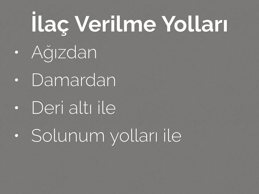 Yutulan, dil altına uygulanan, emilen, çiğnenen veya suda çözünerek uygulanan türleri vardır.