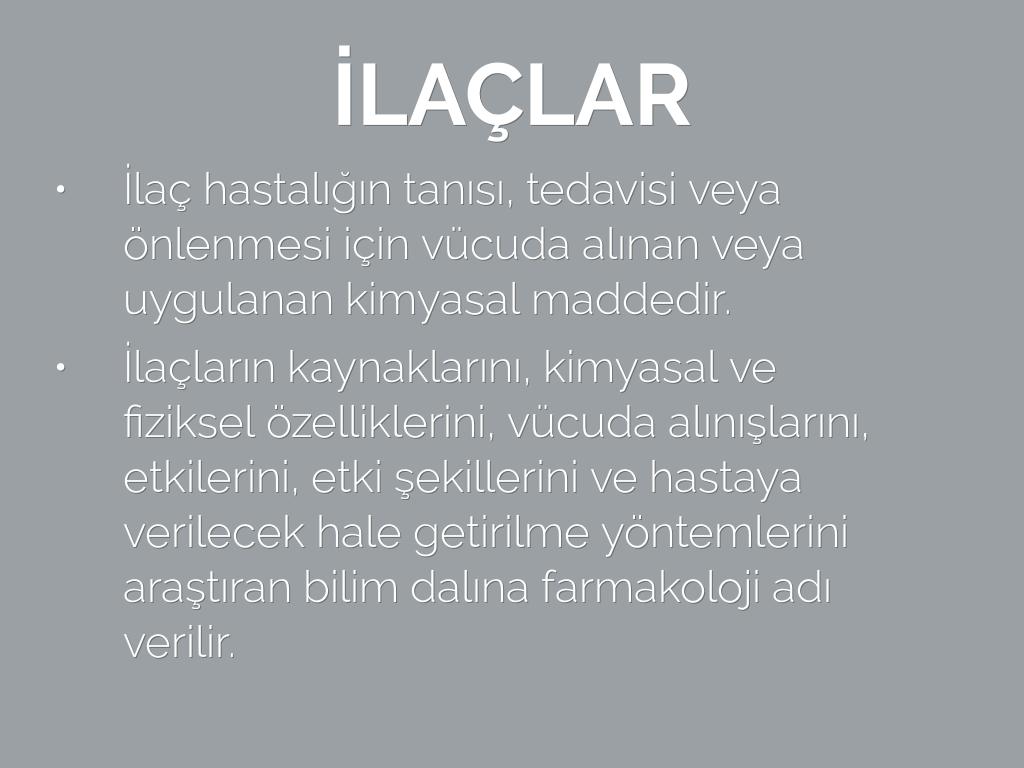 İlaç hastalığın tanısı, tedavisi veya önlenmesi için vücuda alınan veya uygulanan kimyasal maddedir.