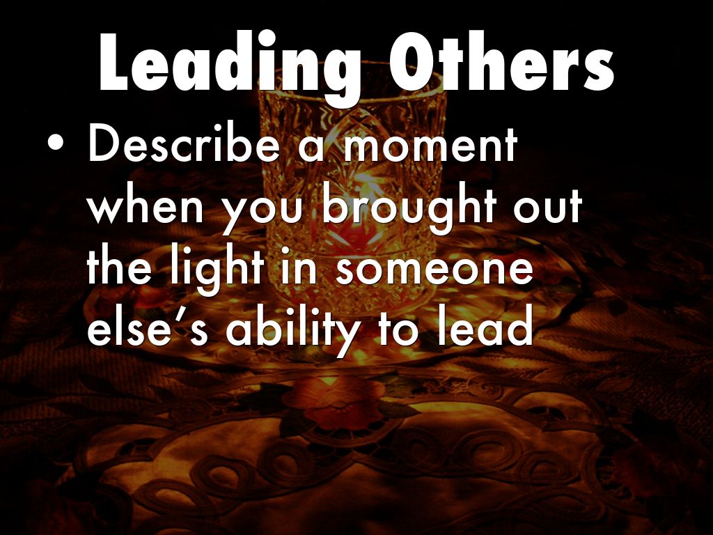 Describe a moment when you brought out the light in someone else’s ability to lead