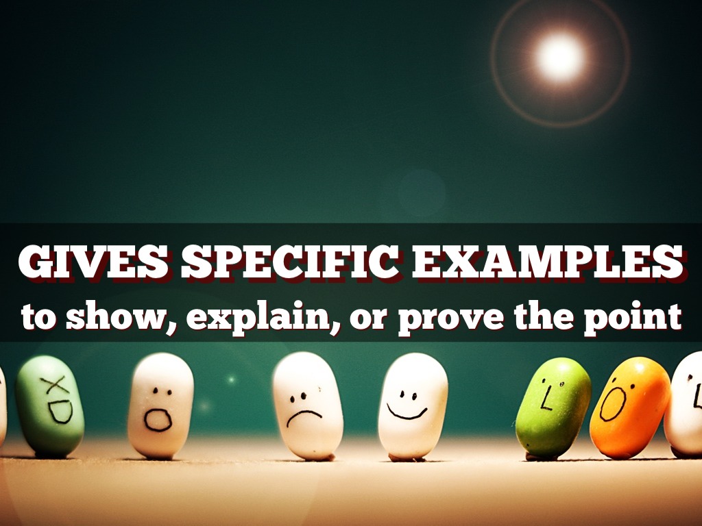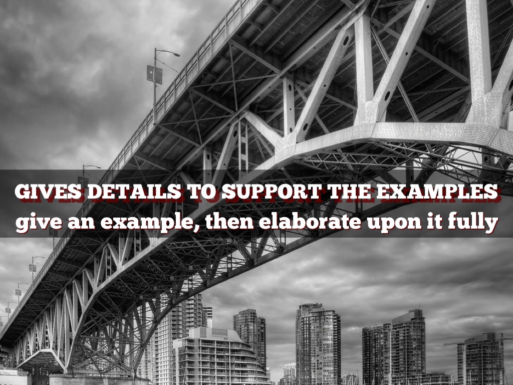 GIVES DETAILS TO SUPPORT THE EXAMPLES