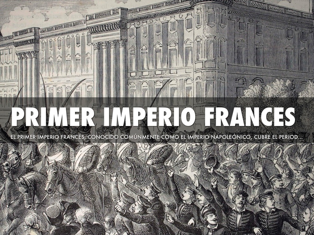 EL PRIMER IMPERIO FRANCÉS, CONOCIDO COMÚNMENTE COMO EL IMPERIO NAPOLEÓNICO, CUBRE EL PERIODO DESDE LA CORONACIÓN DE SU EMPERADOR, NAPOLEÓN BONAPARTE HASTA SU ABDICACIÓN, EN 1815. OFICIALMENTE, EL TÉRMINO SE REFIERE AL PERIODO COMPRENDIDO ENTRE EL FIN DEL CONSULADO HASTA LA RESTAURACIÓN DE LA MONARQUÍA BORBÓNICA, AUNQUE POSTERIORMENTE VIVIÓ UN EPÍLOGO ENTRE EL PERIODO DE LOS CIEN DÍAS (1 DE MARZO DE 1815), LA ABDICACIÓN FINAL DE NAPOLEÓN, EL 22 DE JUNIO DE 1815, Y LA ENTRADA DE LUIS XVIII EN PARÍS, CONLLEVANDO ESTO LA SALIDA EL 7 DE JULIO DEL EMPERADOR NAPOLEÓN II Y SU COMISIÓN DE GOBIERNO. LOS CONFLICTOS QUE EL IMPERIO TUVO CON GRAN BRETAÑA, PRUSIA, RUSIA, Y VARIOS PAÍSES MÁS SON CONOCIDOS COMO GUERRAS NAPOLEÓNICAS O GUERRAS DE COALICIÓN.