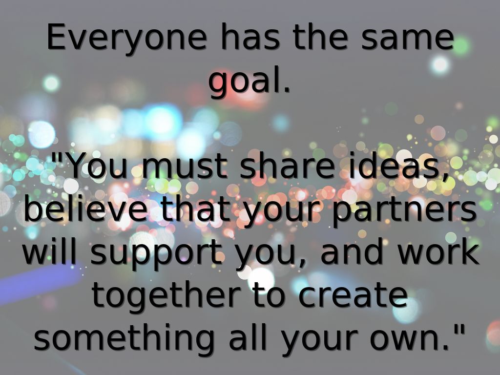 "You must share ideas, believe that your partners will support you, and work together to create something all your own."