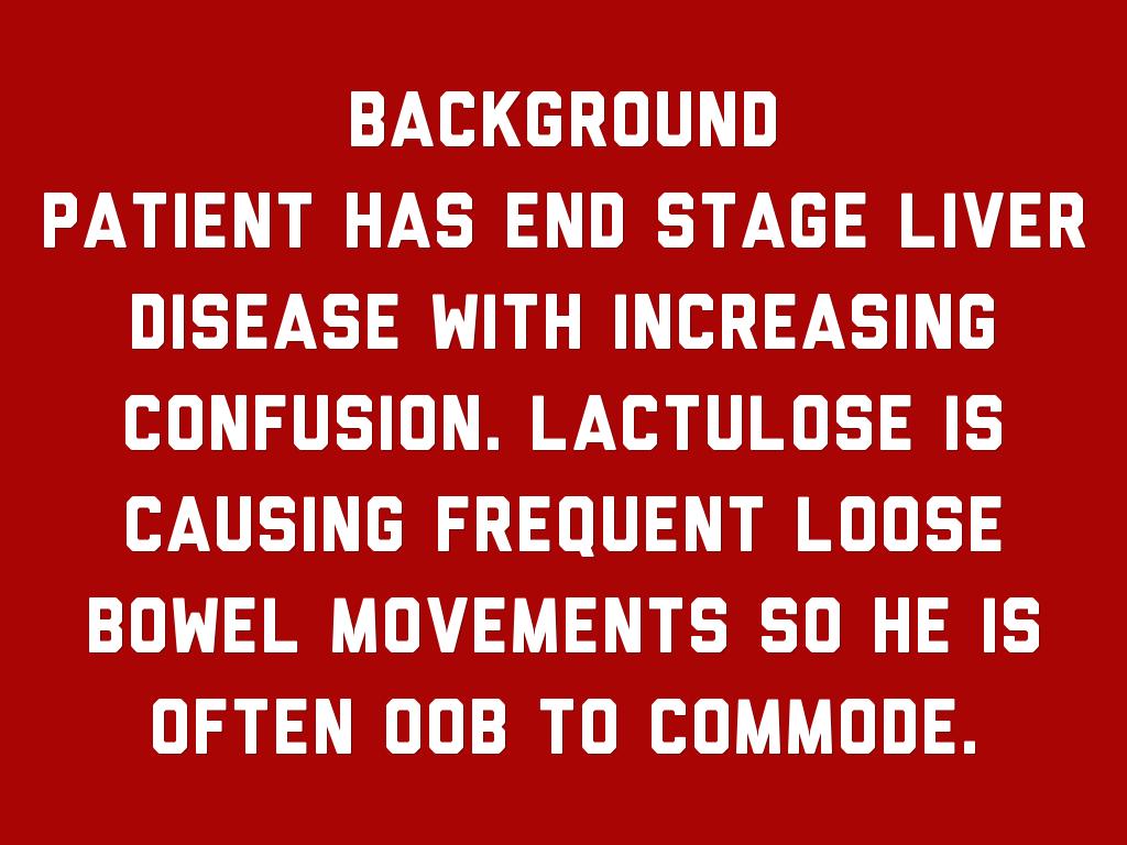 Patient has End Stage Liver Disease with increasing confusion. Lactulose is causing frequent loose bowel movements so he is often OOB to commode.