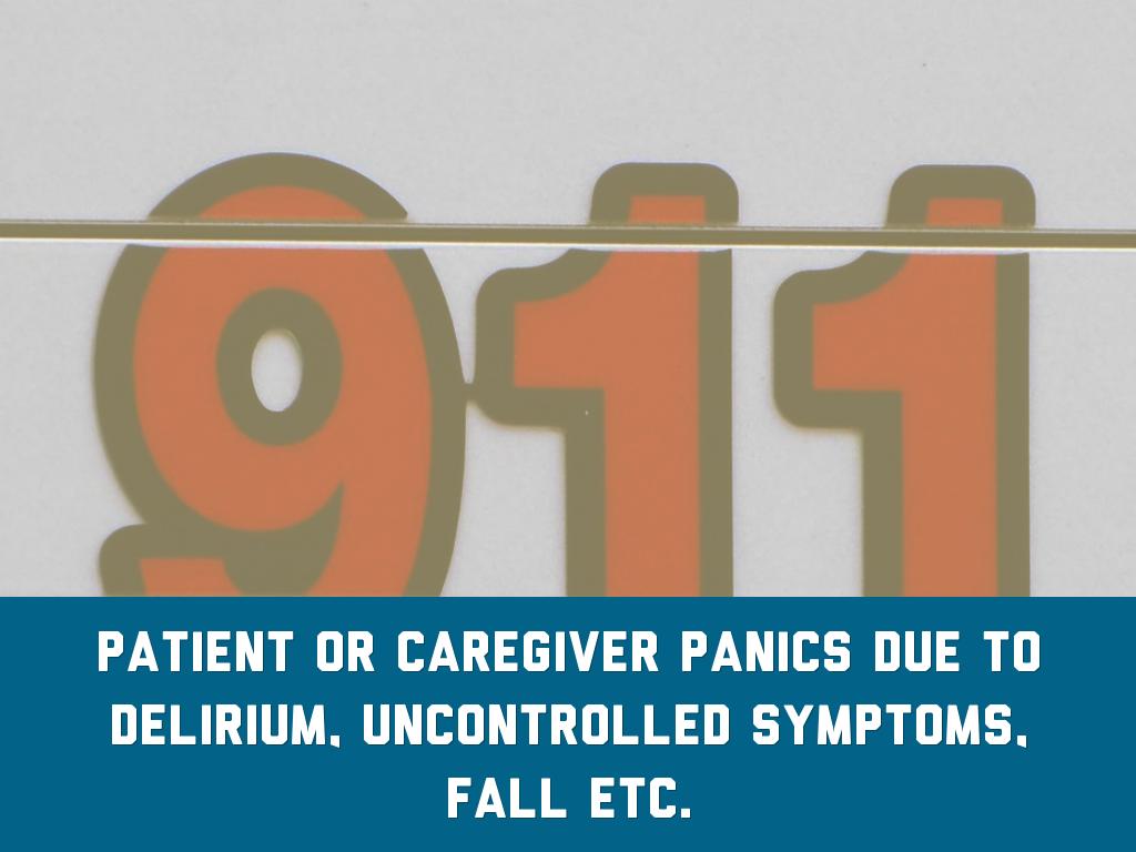 Patient or caregiver panics due to delirium, uncontrolled symptoms, fall etc.
