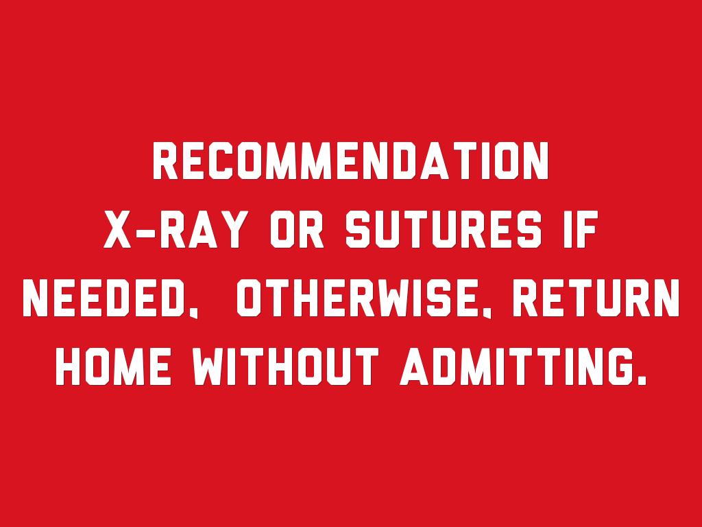 x-ray or sutures if needed, otherwise, return home without admitting.
