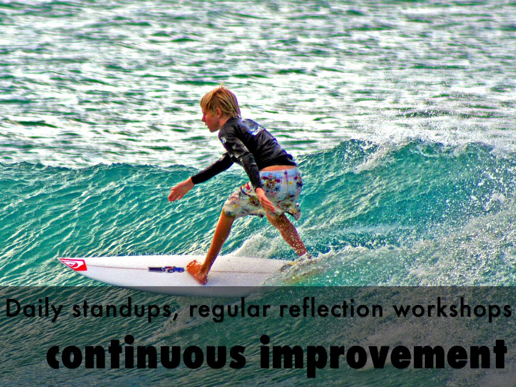 Daily standups, regular reflection workshops