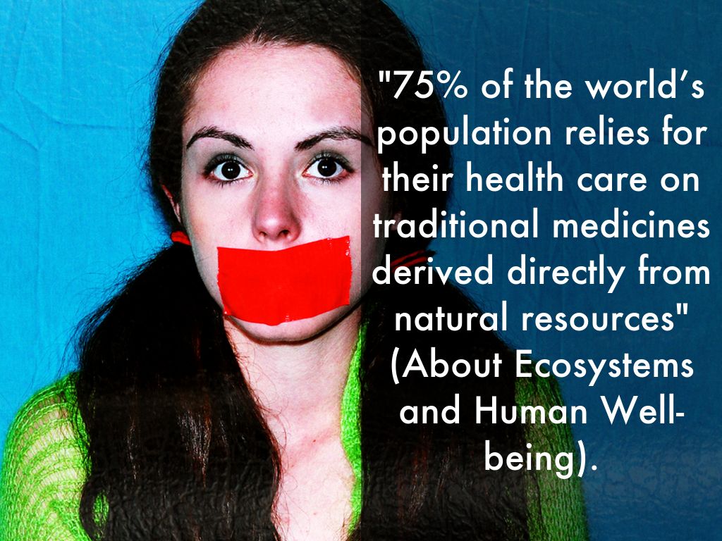 "75% of the world’s population relies for their health care on traditional medicines derived directly from natural resources" (About Ecosystems and Human Well-being).