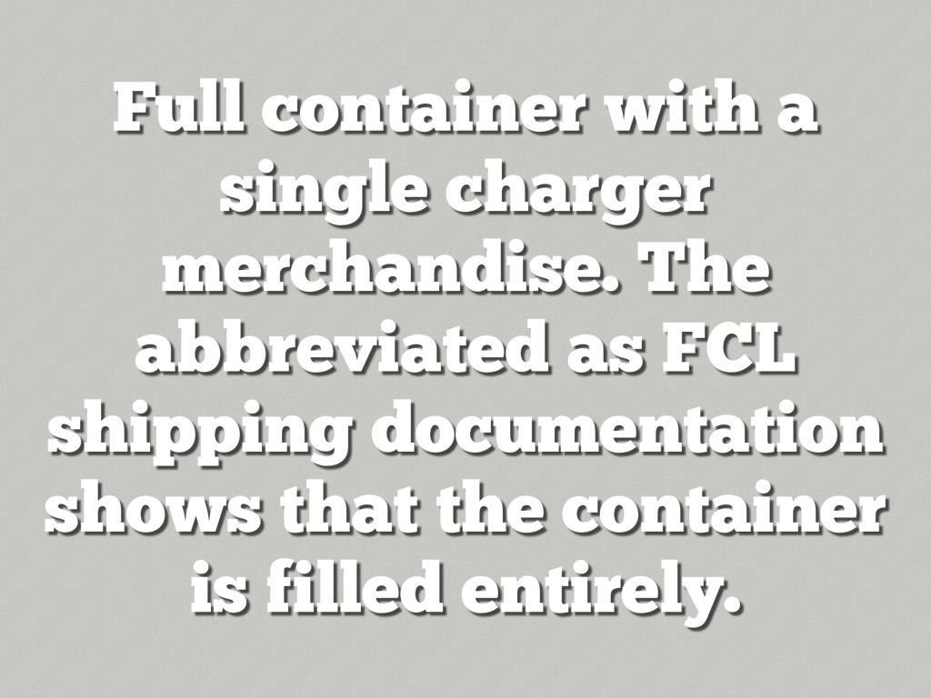 Full container with a single charger merchandise. The abbreviated as FCL shipping documentation shows that the container is filled entirely.