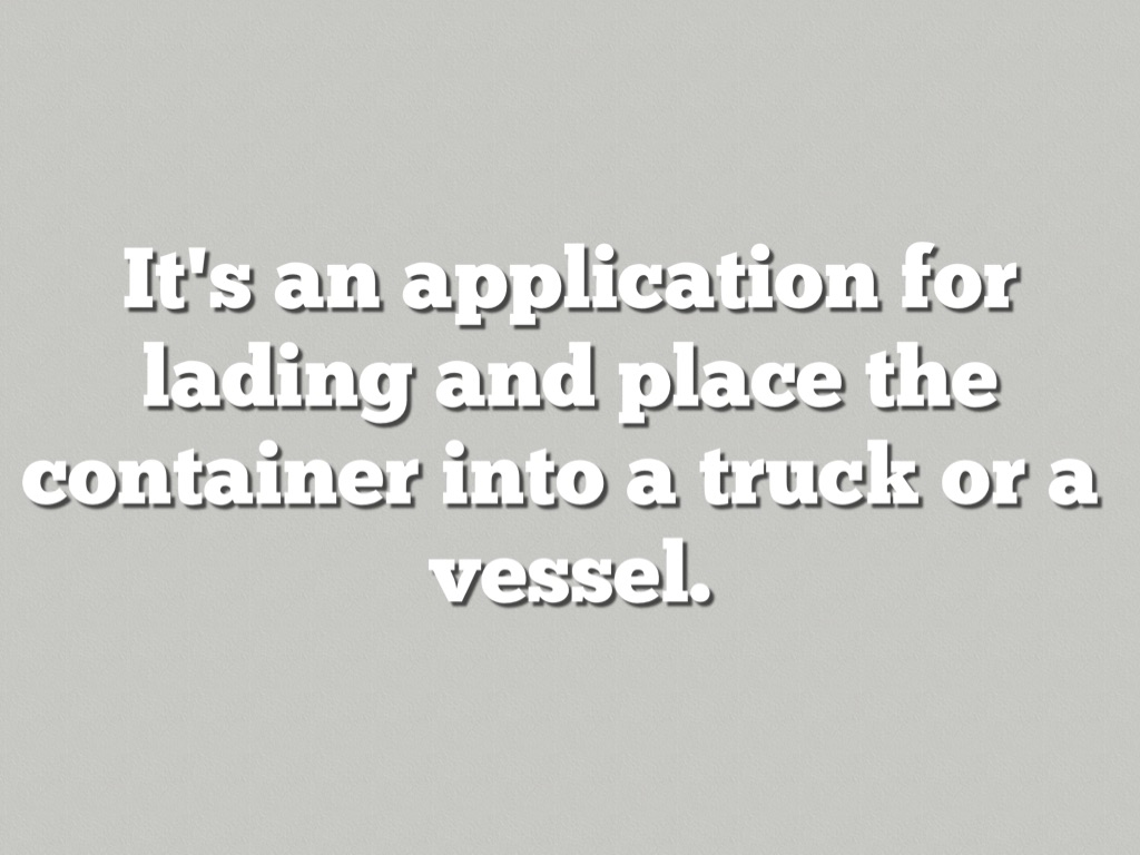 It's an application for lading and place the container into a truck or a vessel.