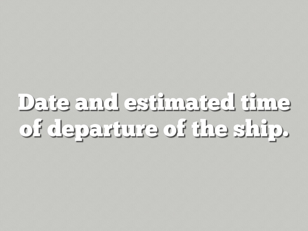 Date and estimated time of departure of the ship.