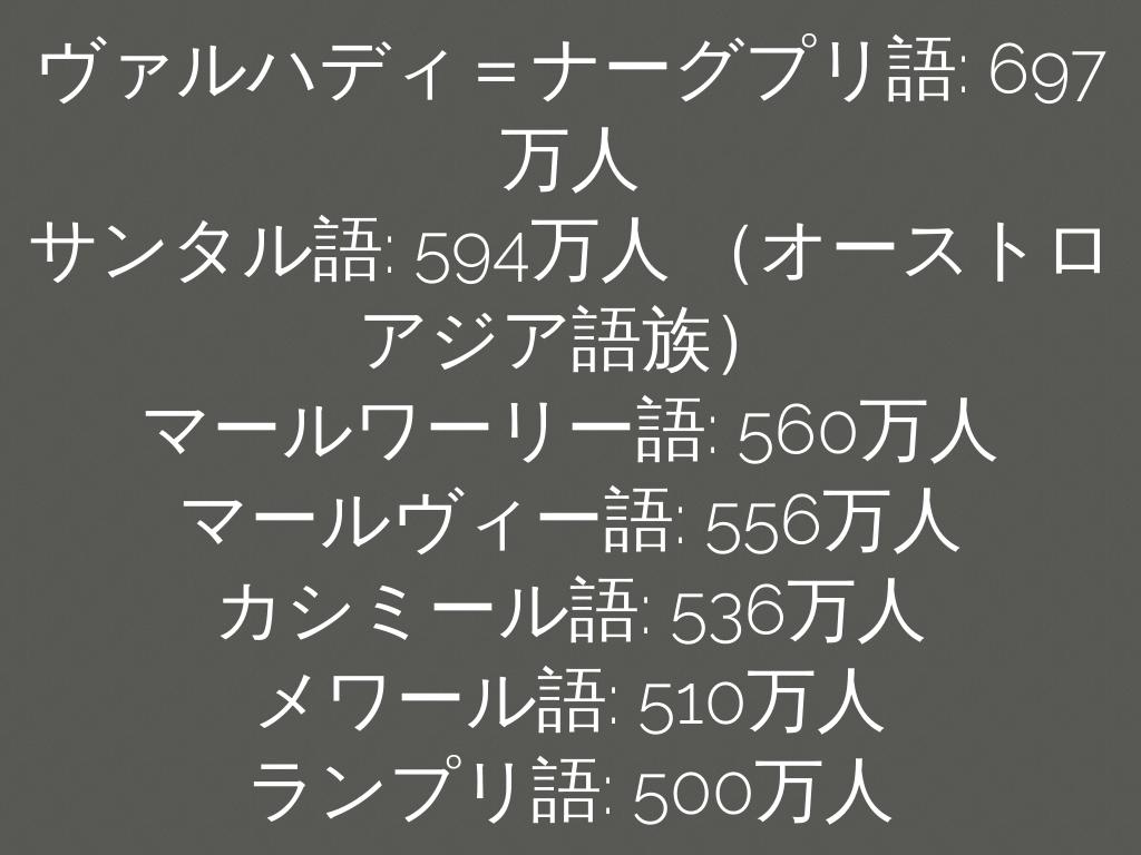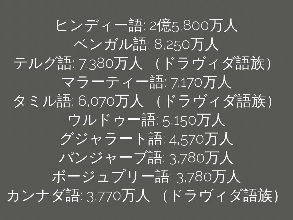 タミル語: 6,070万人 (ドラヴィダ語族)