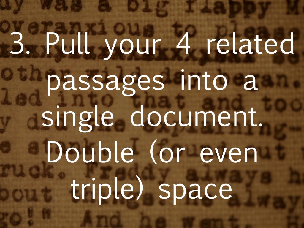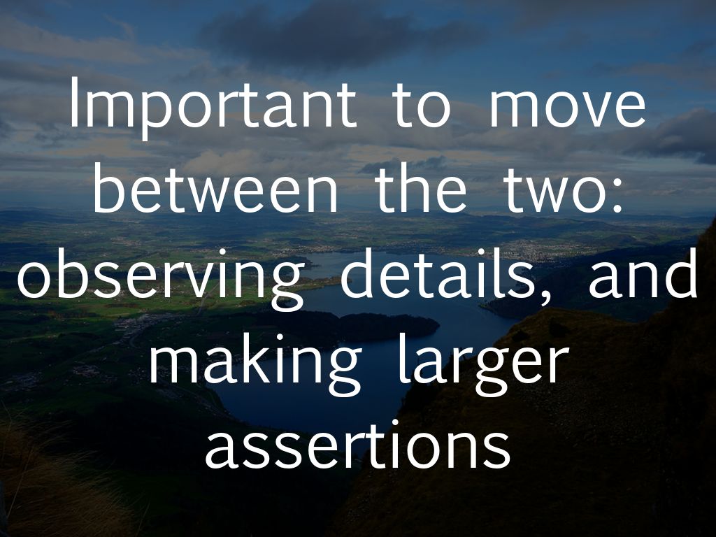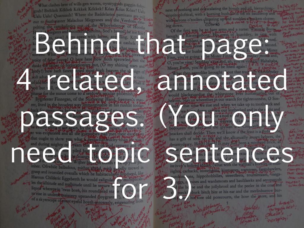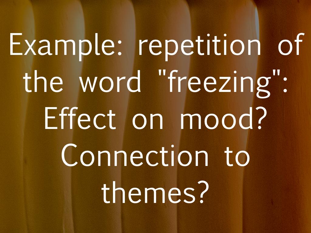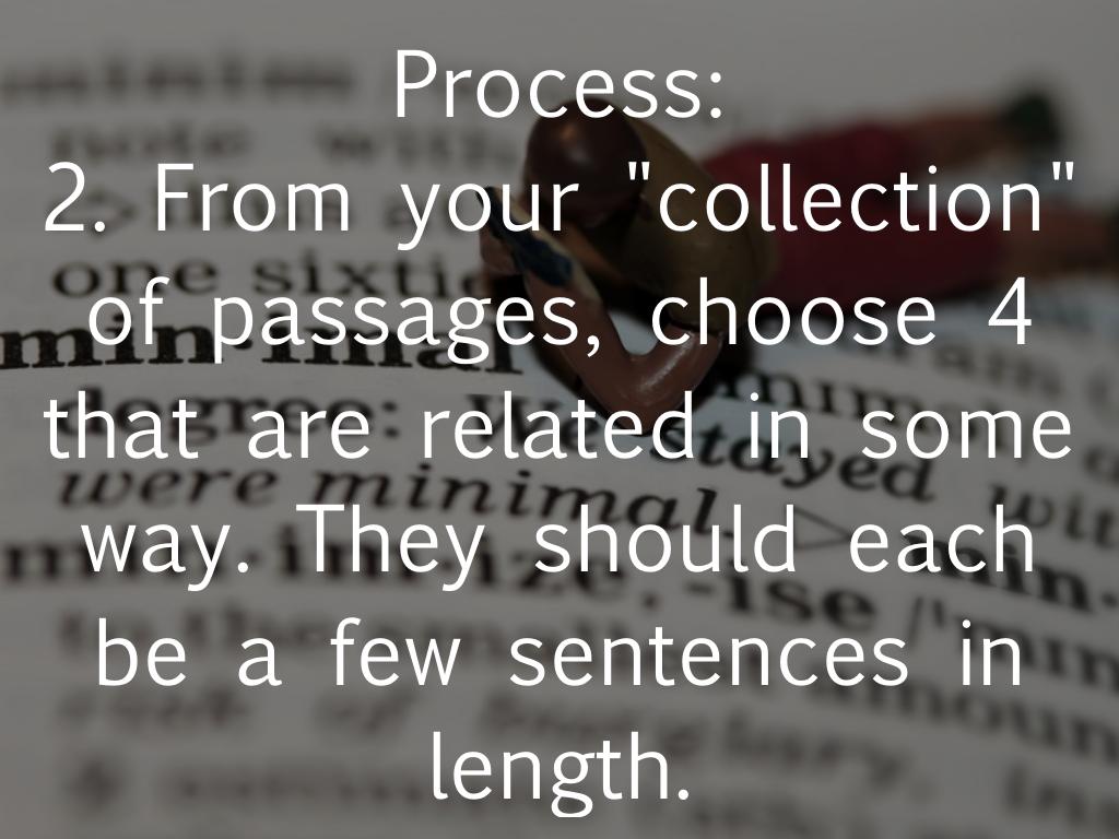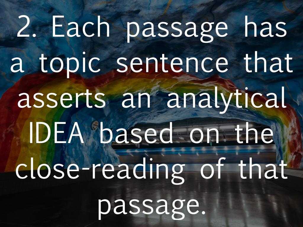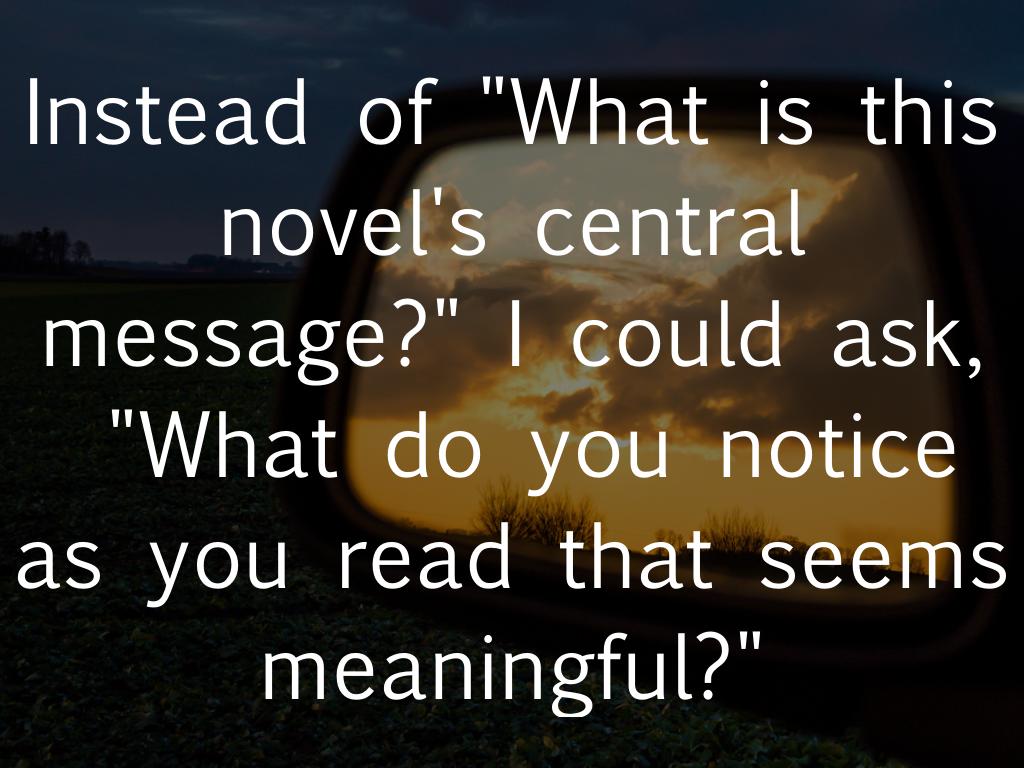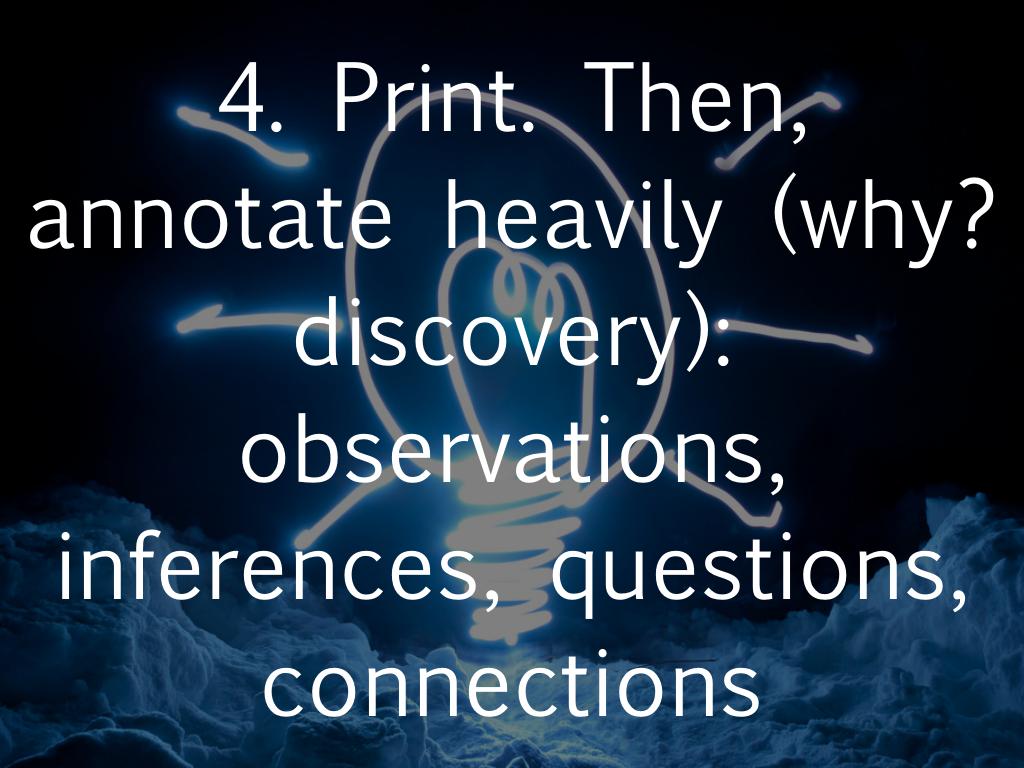 PRESENTATION OUTLINE10th Grade: The Catcher in the Rye: Inductive Analysis Project Write Away: What is hard about writing? What are the steps involved in writing a traditional essay about literature? 1. Thesis statement 2. Topic sentences (to support thesis) 3. Textual evidence (to support topic sentences) This is "Deductive Reasoning": Start with a premise or answer; find evidence to back it up. BUT, the real "magic" of inquiry and discovery happens by paying attention to details you observe, infer, notice patterns, draw connections, slowly building... Close reading: first step in inductive reasoning: observations and inferences... That pattern of observations and inferences builds toward your eventual interpretation Instead of "What is this novel's central message?" I could ask, "What do you notice as you read that seems meaningful?" This is an INDUCTIVE approach INductive Approach allows for more discovery unlocks more meaning allows for more variation and unique interpretation more playful, interesting, fun Important to move between the two: observing details, and making larger assertions 1. As you read, collect passages that make you stop and think, or wonder, or feel something Process: 2. From your "collection" of passages, choose 4 that are related in some way. They should each be a few sentences in length. Look through your passages. Find 4 that relate in a meaningful, interesting way (imagery, theme, events, emotion, etc.) 3. Pull your 4 related passages into a single document. Double (or even triple) space 4. Print. Then, annotate heavily (why? discovery): observations, inferences, questions, connections language devices, connotations, double meanings, images, symbols, patterns, What is the effect of language on the mood, tone, meaning? How does the passage connect to broader patterns and themes? How does it relate to the other passages? Example: repetition of the word "freezing": Effect on mood? Connection to themes? Look for connections among the passages and between the passages and the book as a whole Product: What I am looking for: 1. 4 passages with thoughtful annotations connecting language to mood, tone, theme See annotation resources: handouts and posted 2. Each passage has a topic sentence that asserts an analytical IDEA based on the close-reading of that passage. Topic sentences: Reasonable, yet arguable: can be supported with specific observations/examples from the passage. 3. Finally, a thesis: In CIR JD Salinger (verb + literary device) to (highlight/illustrate/ emphasize) (something about the book) and (broader truth or theme). ex: JD Salinger employs intensifying cold imagery to highlight Holden's growing loneliness and to reinforce the human need for connection. JD Salinger presents a recurring metaphor of Holden concealing an imaginary bullet wound to represent Holden’s repressed emotional pain, and to highlight the shame boys often feel to show emotional vulnerability. Format: Top Page: Heading Thesis Topic Sentences Behind that page: 4 related, annotated passages. (You only need topic sentences for 3.) After break: -Top-down Web -Draft One -Feedback and Revision -Final Draft Haiku Deck Pro User