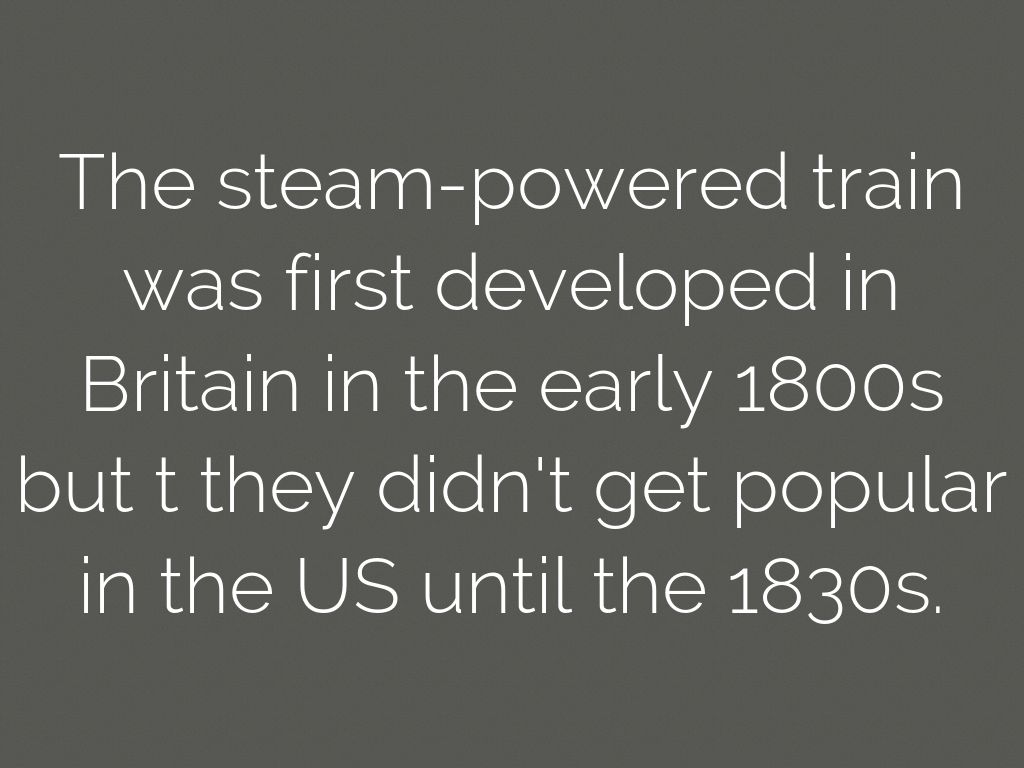 The steam-powered train was first developed in Britain in the early 1800s but t they didn't get popular in the US until the 1830s.
