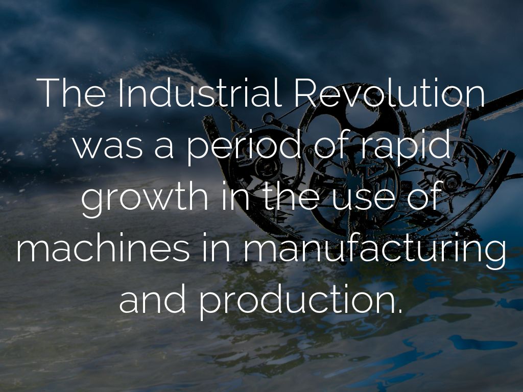 The Industrial Revolution was a period of rapid growth in the use of machines in manufacturing and production.