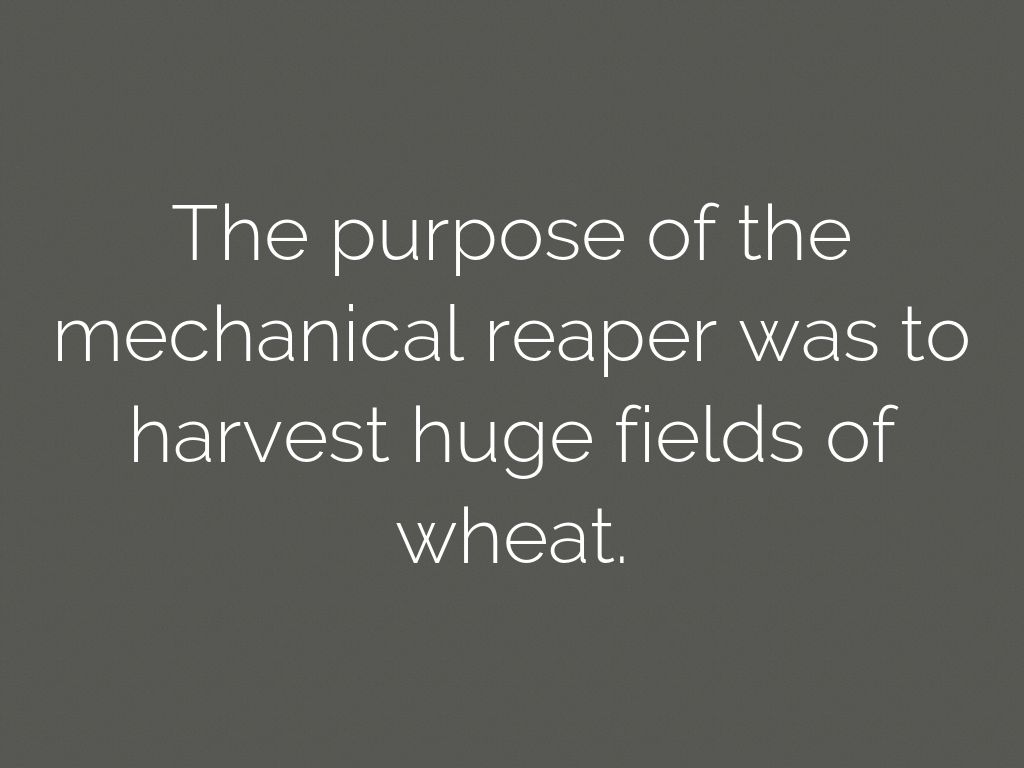 The purpose of the mechanical reaper was to harvest huge fields of wheat.