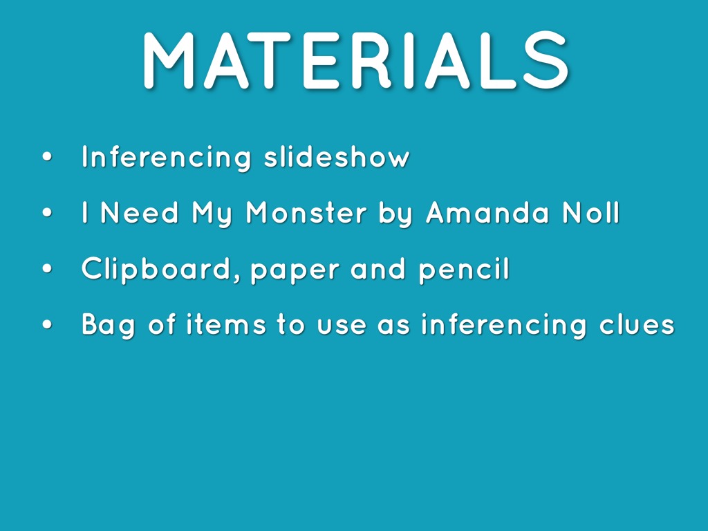 Guided Student Practice: While reading story, demonstrate how to make inferences of what monsters may look like