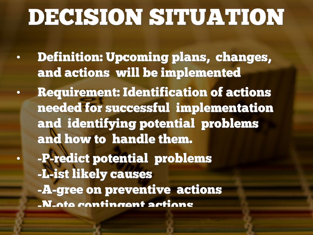 Potential Problem Analysis - tools for thinking about potential problems and planning preventive and