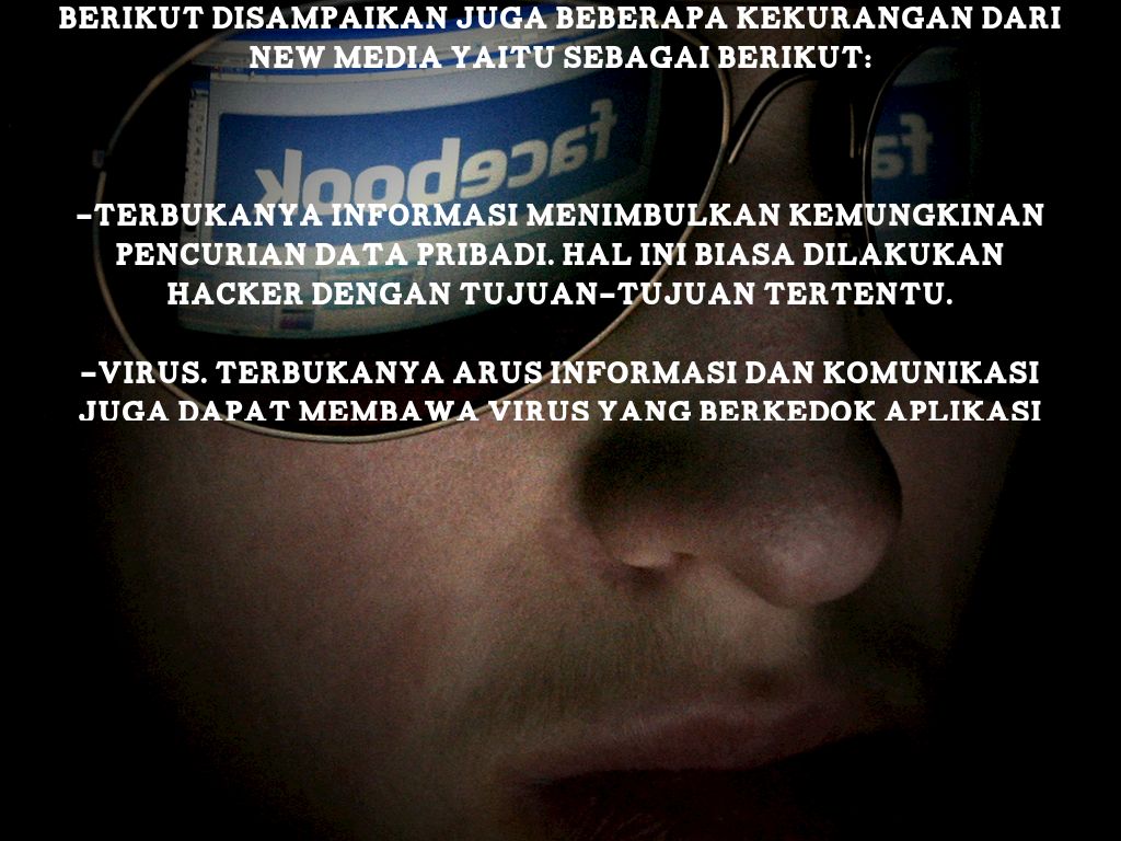 Dengan SmartPhone kita dapat lebih cepat mendapatkan informasi yang kita inginkan atau juga memberikan informasi yang kita dapatkan sesuai dengan kenyataan. Misalkan di situs jejaring Twitter, kita dapat mendapatkan informasi tentang kejadian sekitar dengan memfollow akun yang berhubungan dengan berita yang baru. Internet dijadikan sebagai komponen New Media karena dengan Internet kita DVD.