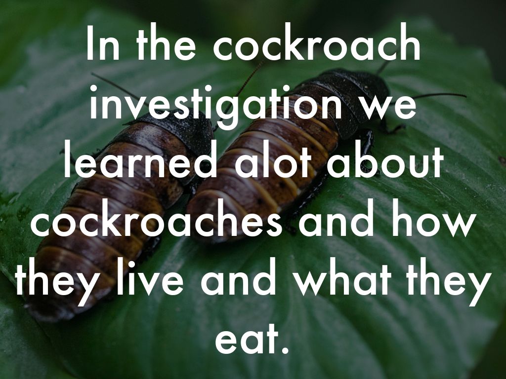 In the cockroach investigation we learned alot about cockroaches and how they live and what they eat.