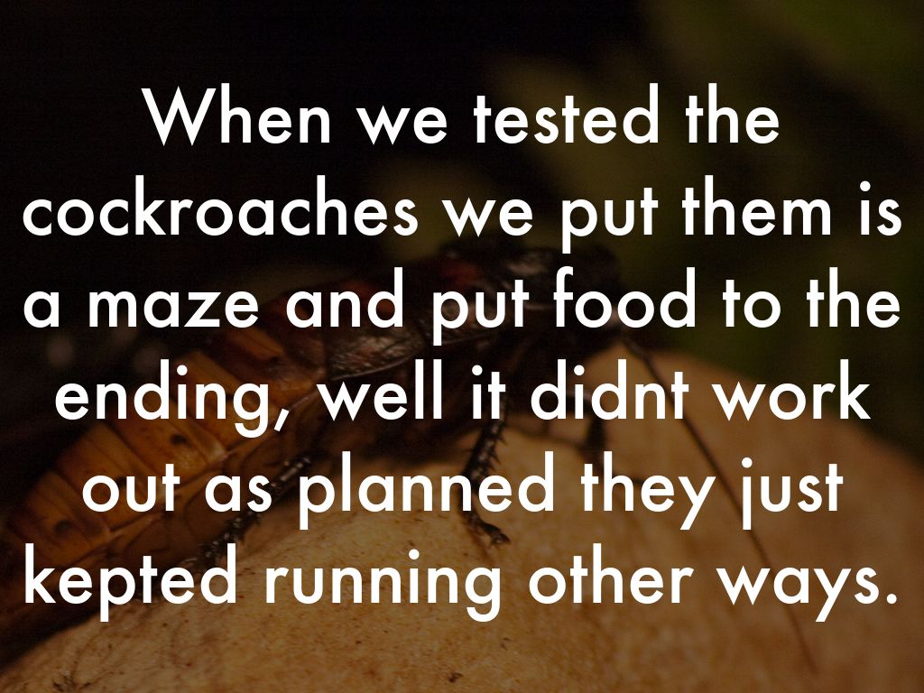 When we tested the cockroaches we put them is a maze and put food to the ending, well it didnt work out as planned they just kepted running other ways.