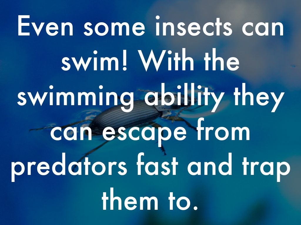 Even some insects can swim! With the swimming abillity they can escape from predators fast and trap them to.