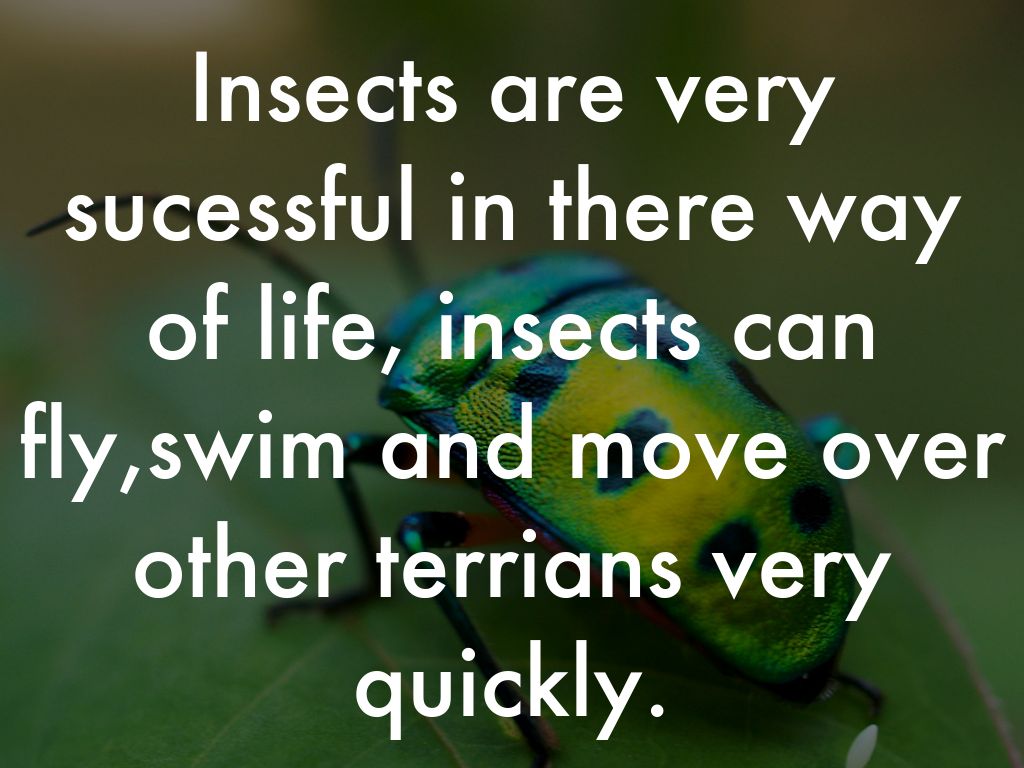 Insects are very sucessful in there way of life, insects can fly,swim and move over other terrians very quickly.